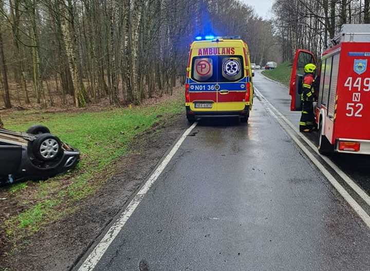 We wtorek, 2 kwietnia tuż przed południem na drodze krajowej numer 59 na wysokości miejscowości Wejdyki (gmina Ryn) kierująca oplem zjechała na pobocze i dachowała.