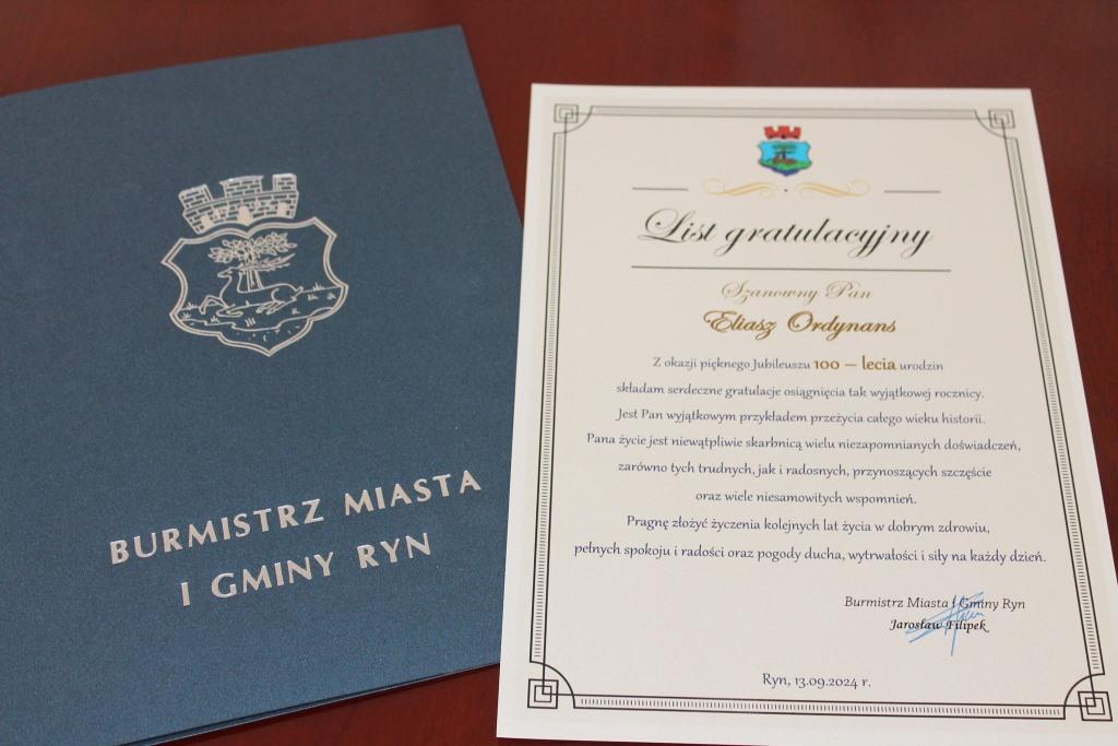 W piątek, 13 września mieszkaniec gminy Ryn, Pan Eliasz Ordynans obchodził piękny jubileusz 100-lecia urodzin.