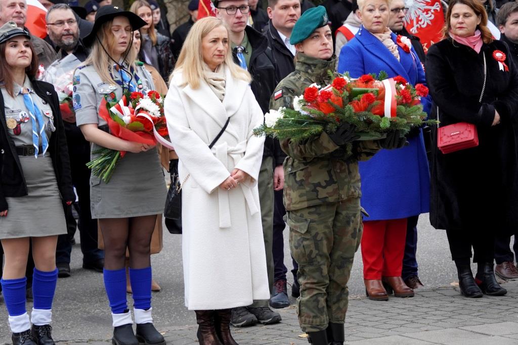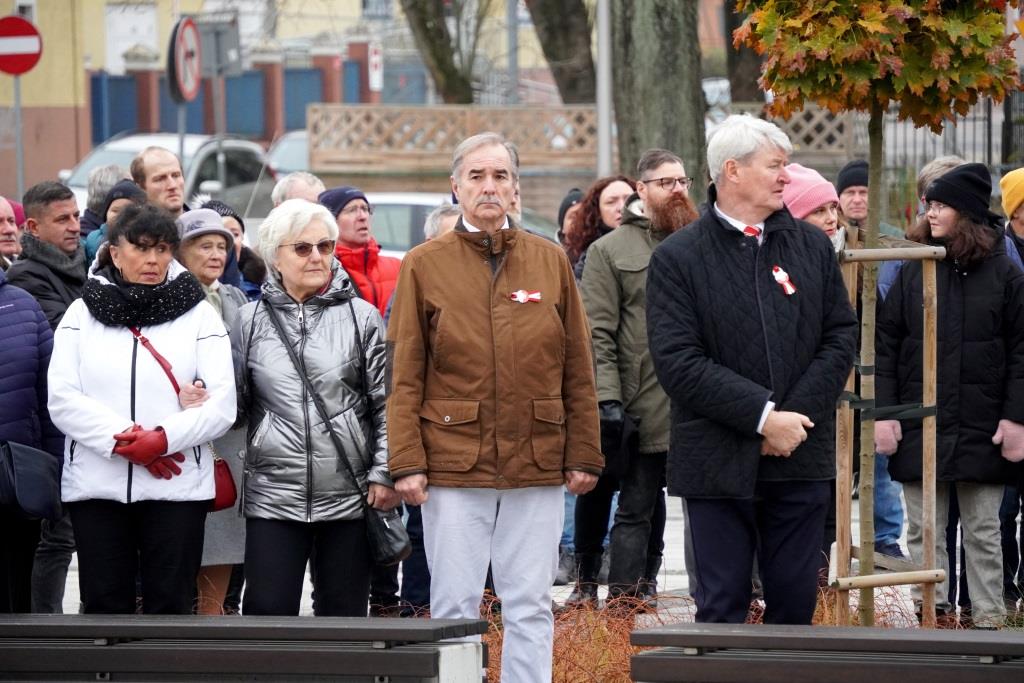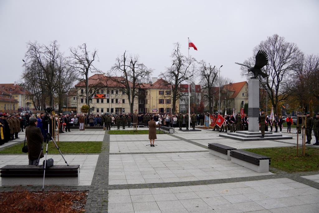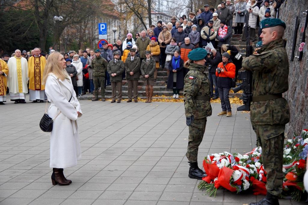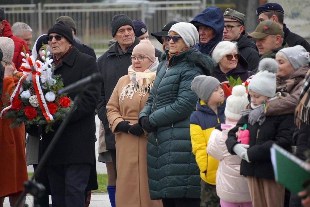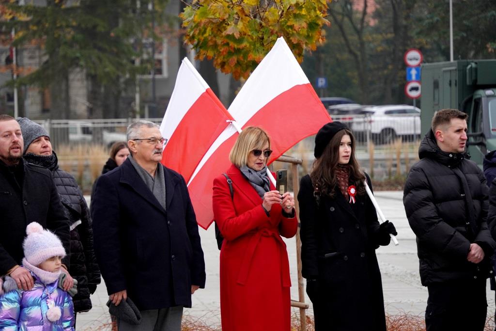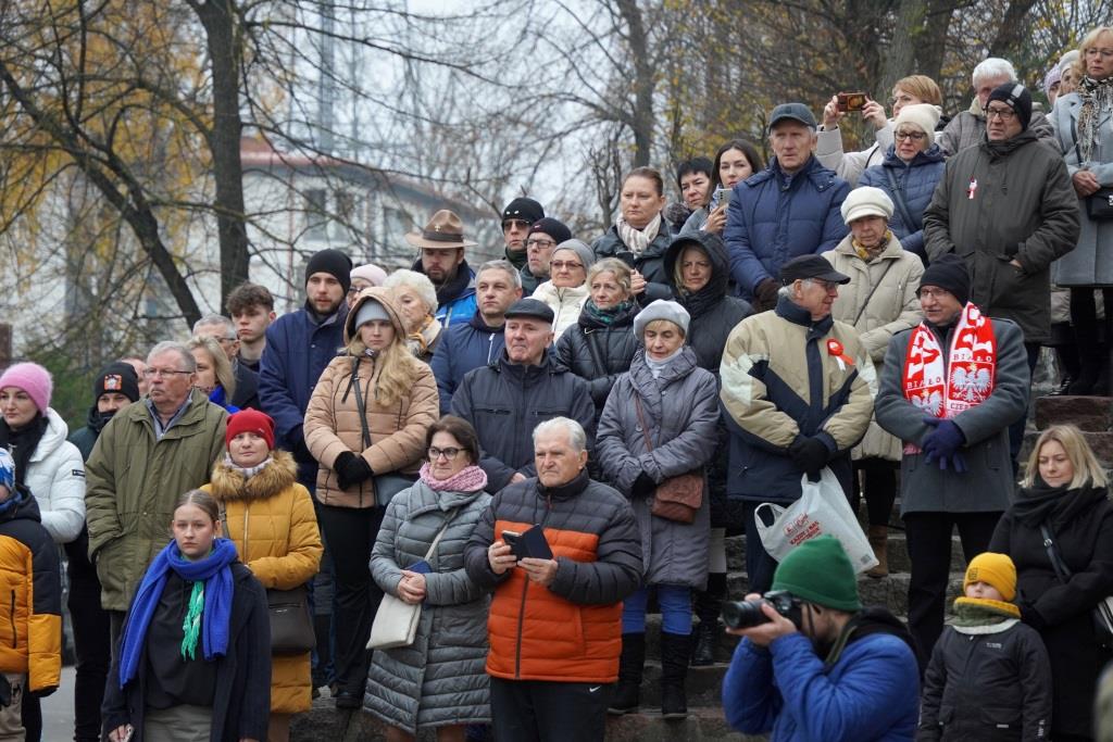 Pod pomnikiem Orła Białego zebrani oddali hołd poległym w walce o niepodległość oraz wysłuchali przemówień zaproszonych gości, którzy przypomnieli znaczenie odzyskania wolności oraz odpowiedzialności, jaką niesie ze sobą budowanie wspólnoty narodowej.