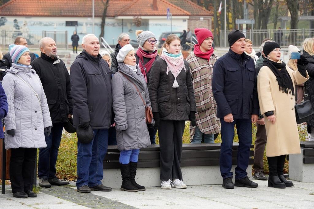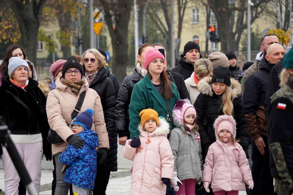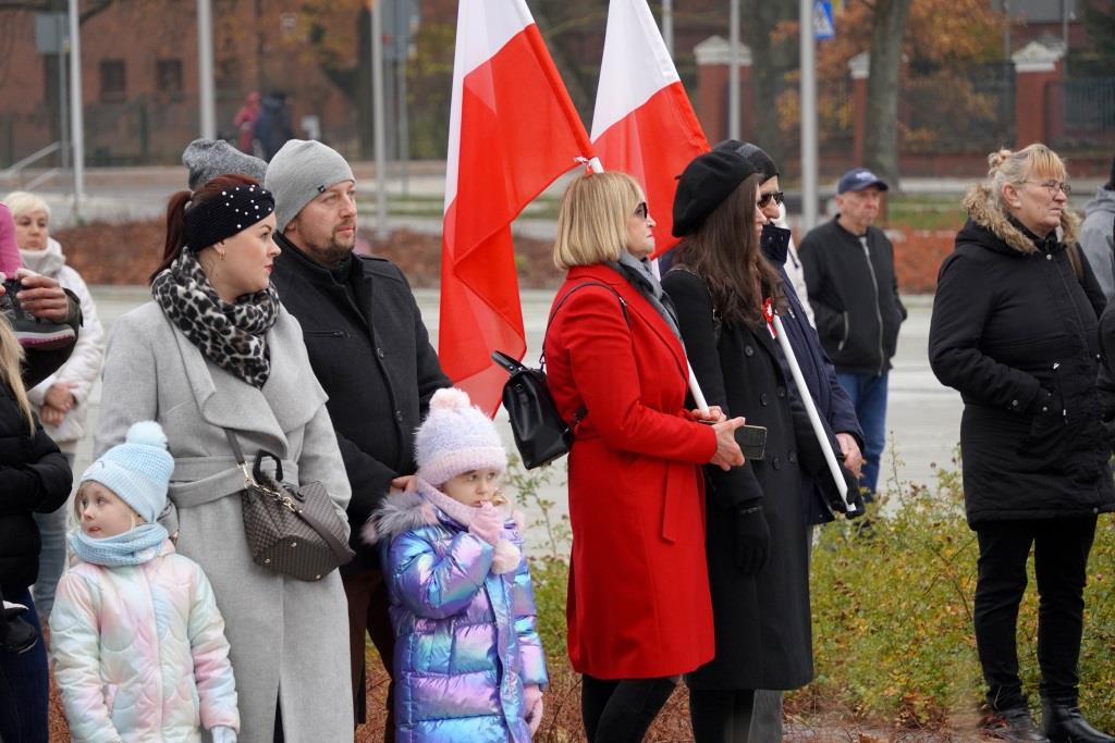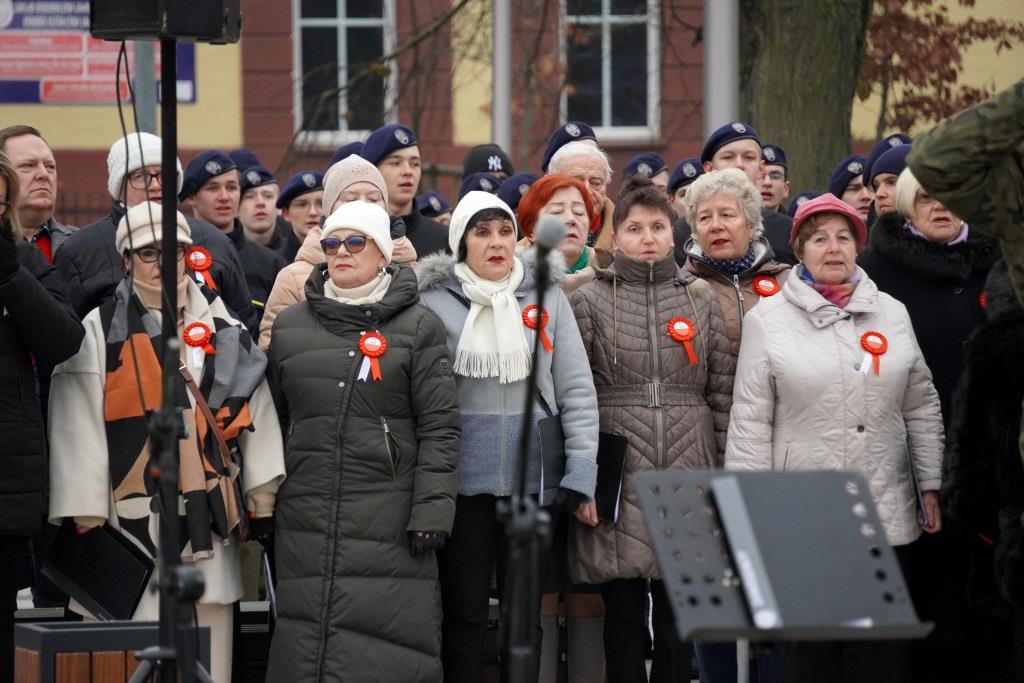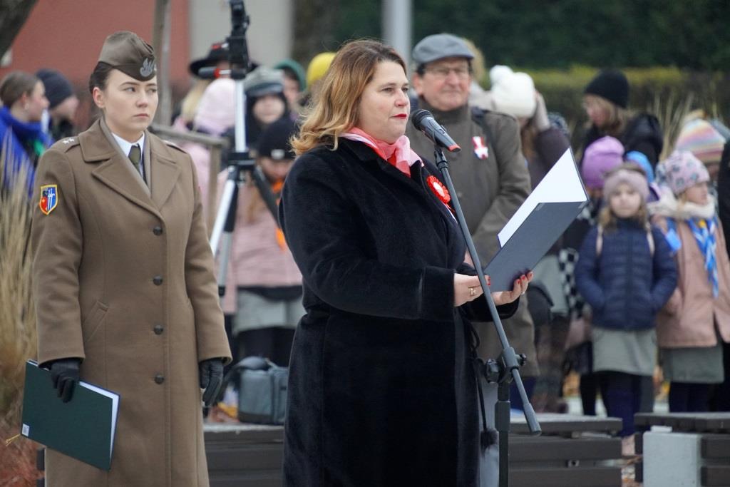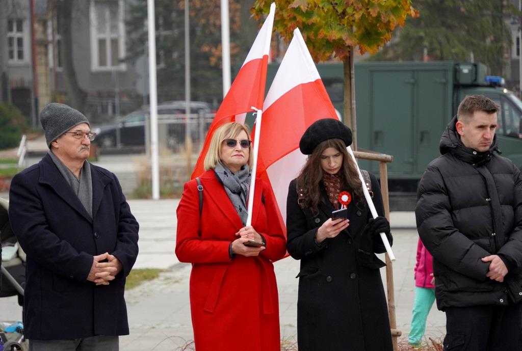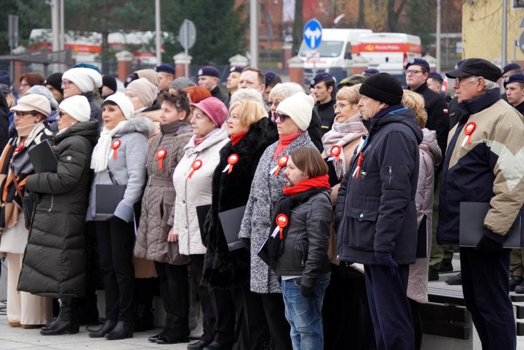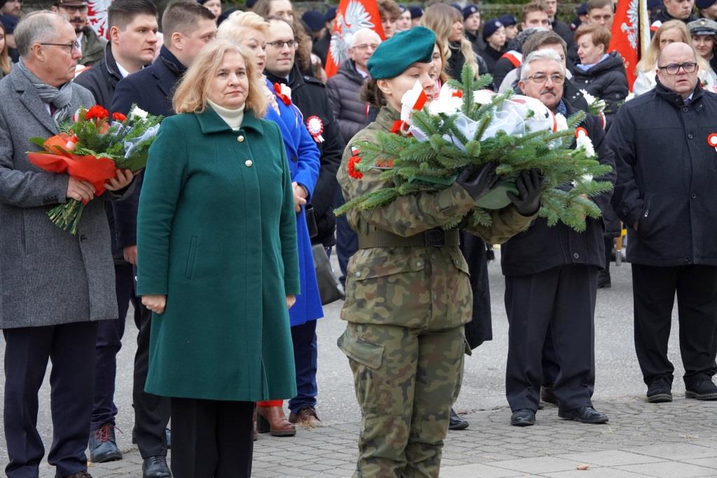 Pod pomnikiem Orła Białego zebrani oddali hołd poległym w walce o niepodległość oraz wysłuchali przemówień zaproszonych gości, którzy przypomnieli znaczenie odzyskania wolności oraz odpowiedzialności, jaką niesie ze sobą budowanie wspólnoty narodowej.
