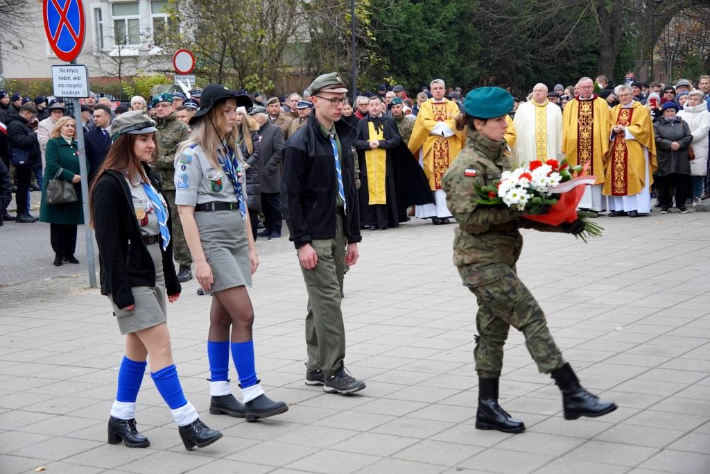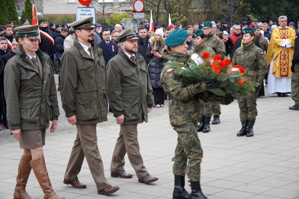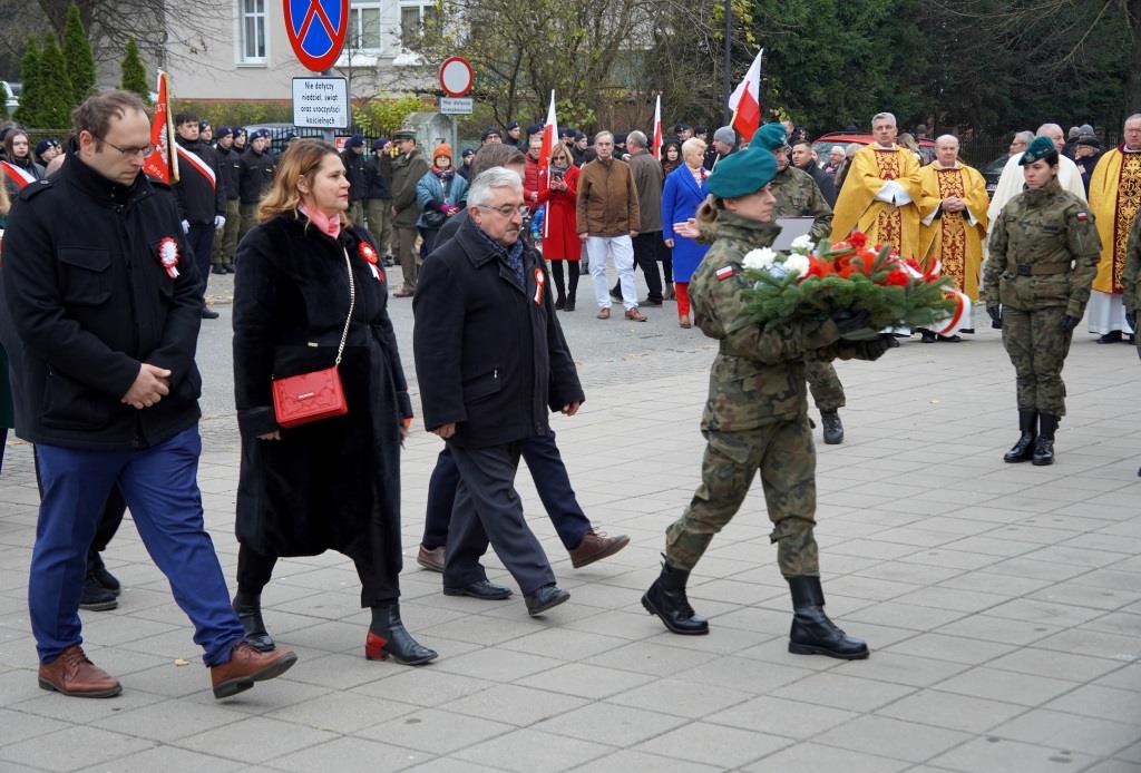 Pierwszym punktem po Mszy Świętej było złożenie wieńców pod Murem Pamięci przy Sanktuarium Św. Brunona, a następnie uroczysty pochód ruszył w kierunku Placu Marszałka Józefa Piłsudskiego, gdzie odbyły się główne uroczystości patriotyczne.