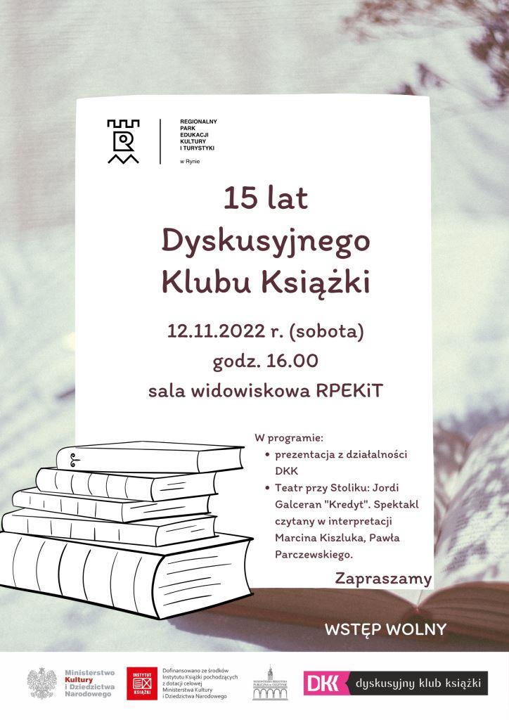 12 listopada 2022 r. odbędą się uroczyste obchody 15-lecia założenia Dyskusyjnego Klubu dla Dorosłych w ryńskiej bibliotece.