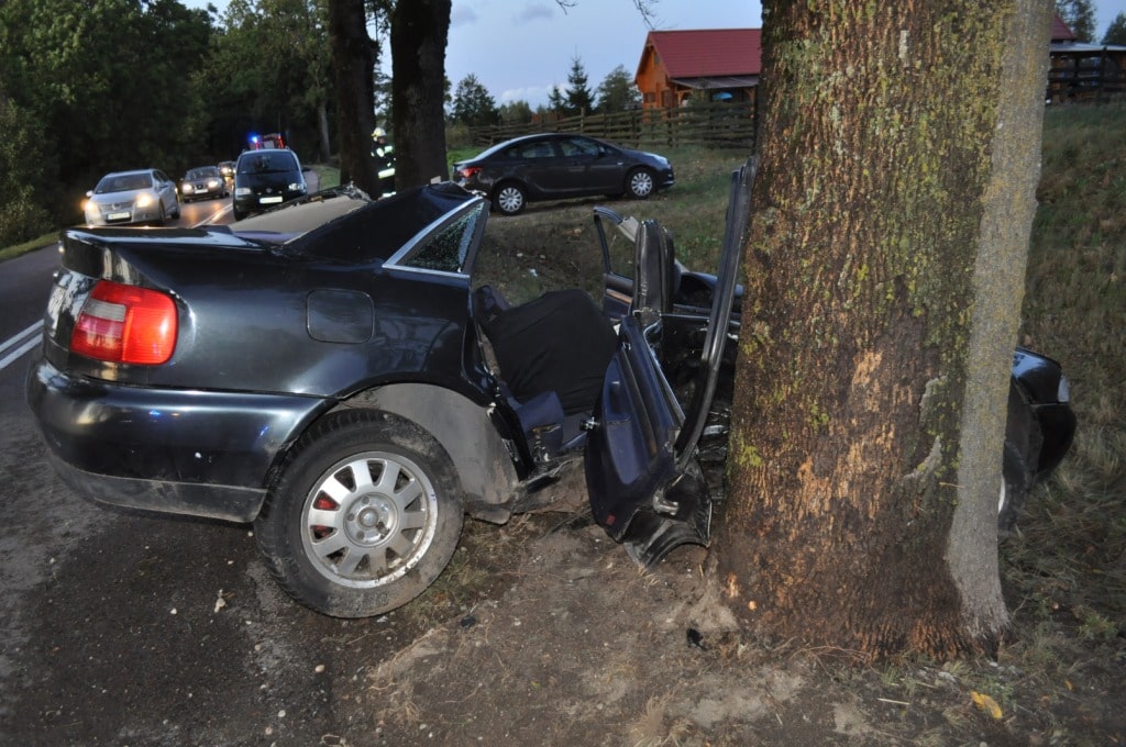 W godzinach popołudniowych w miejscowości Kalinowo, 19-letni mieszkaniec Giżycka, jadąc w kierunku miejscowości Sterławki Małe, nie dostosował prędkości do panujących warunków na drodze i na zakręcie stracił panowanie nad pojazdem, po czym zjechał na pobocze uderzając w przydrożne drzewo.