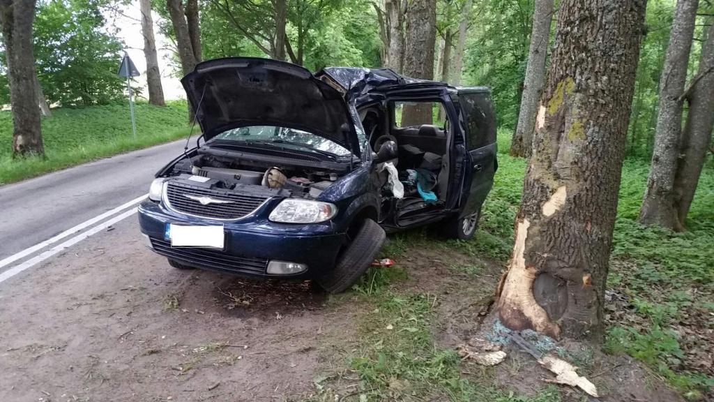Podobne zdarzenie miało miejsce dzisiaj (01.06.2017 r.) około godziny 6:30 na trasie Wrony – Piękna Góra, droga W 592. Tam kierujący Chryster Vojager, również na łuku drogi stracił panowanie nad autem, w wyniku czego uderzył w przydrożne drzewo.