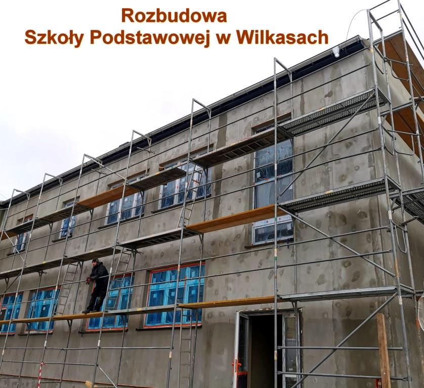 – Trwa rozbudowa Szkoły Podstawowej w Wilkasach o cześć dydaktyczną, stołówkę, zaplecze kuchenne i salę gimnastyczną. Na to zadanie pozyskaliśmy dofinansowanie Rządowego Funduszu Polski Ład.