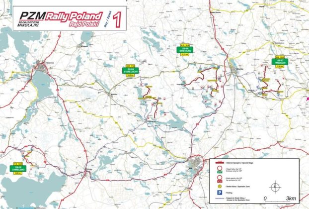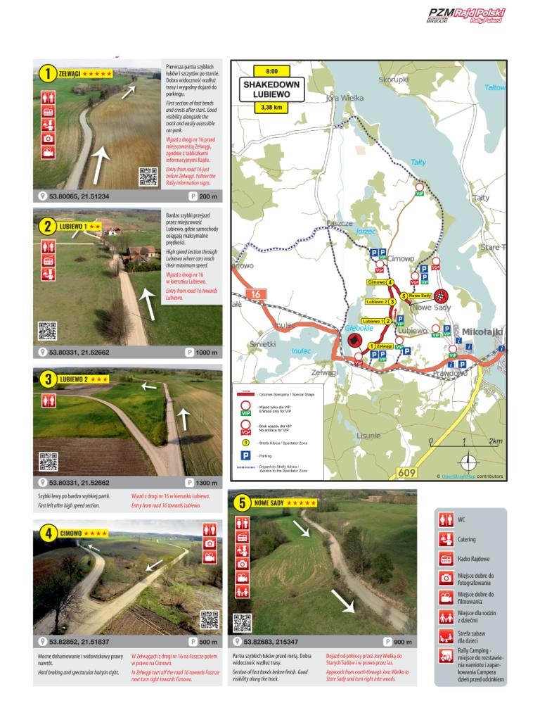 Dziewięć piątkowych odcinków to dwukrotnie przejeżdżane próby: Chmielewo, Wieliczki (ze słynną hopką na przejeździe kolejowym), Świętajno i Stare Juchy, a na zakończenie dnia ponownie rywalizacja na Mikołajki Arenie.