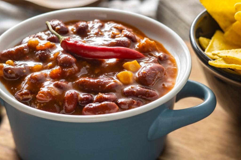 Chilli sin carne to wariacja na temat sycącego gulaszu, który w tradycyjnej wersji występuje z mięsem. Znajdziemy tu wszystkie ulubione warzywa Meksykańczyków. Są dojrzałe pomidory, sycąca fasolka, cebulka, czosnek i pikantne chilli.