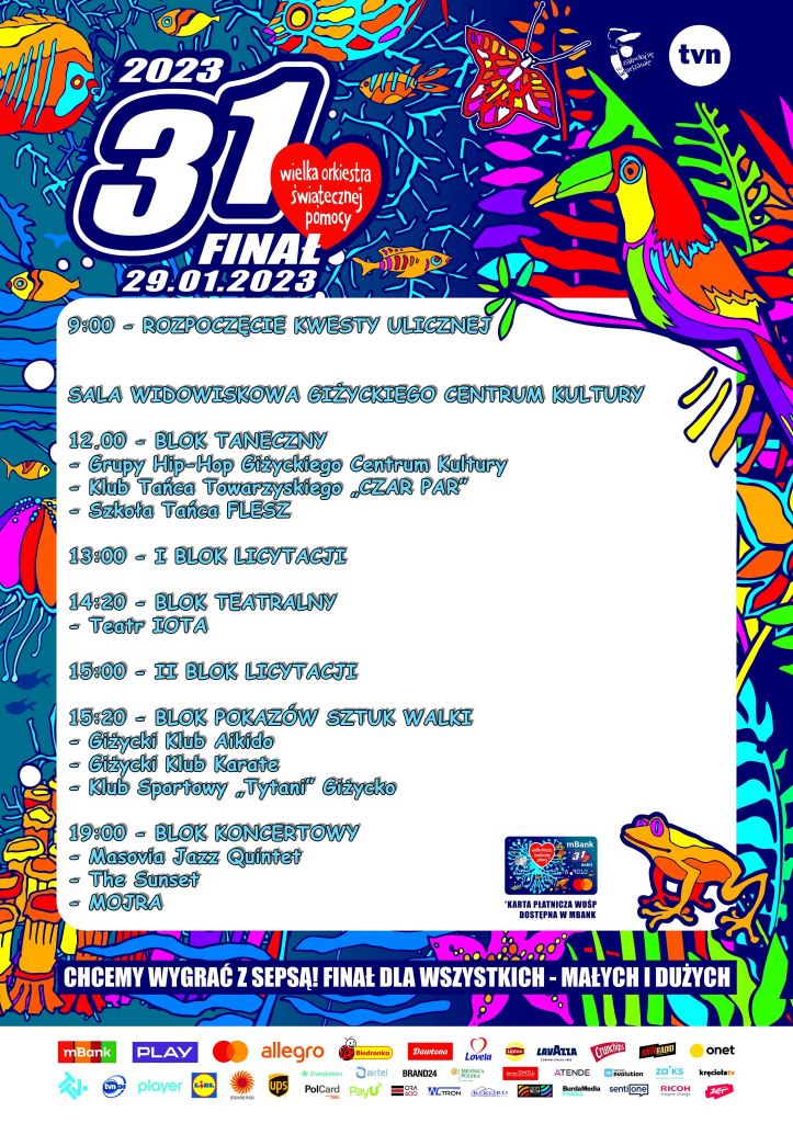 Poniżej plakat z programem 31. Finału WOŚP w Giżycku