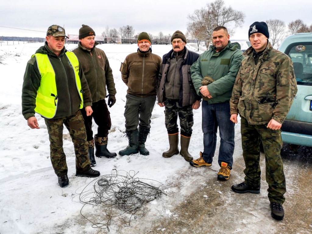 W sobotni poranek 19 stycznia br. pracownicy posterunku Straży Leśnej przy Nadleśnictwie Giżycko wraz z myśliwymi Koła Łowieckiego „Cyranka” w ramach corocznej akcji „Wnyk” patrolowali tereny leśne wokół rezerwatu przyrody „Nietlickie Bagno”. W wyniku akcji zdjęto i zabezpieczono 37 wnyków. W dwóch przypadkach we wnykach znaleziono schwytaną w nie zwierzynę. Pierwszy wnyk zacisnął się wokół szyi młodej łani (samicy jelenia), która być może od paru dni próbowała się z niego wydostać. Niestety odnalezione zwierzę od kilku godzin już nie żyło. W drugim wnyku znaleziono dużego odyńca (samiec dzika powyżej czwartego roku życia) który jeszcze żył. Stalowa plecionka wnyka owinęła mu się wokół gwizdu (ryj dzika) raniąc i zadając ból szamoczącemu się zwierzęciu. Na miejsce wezwano policję i powiatowego lekarza weterynarii z Pisza. Zgodnie z zaleceniem lekarza weterynarii i obowiązującymi procedurami dzika zabezpieczono do dalszych badań.