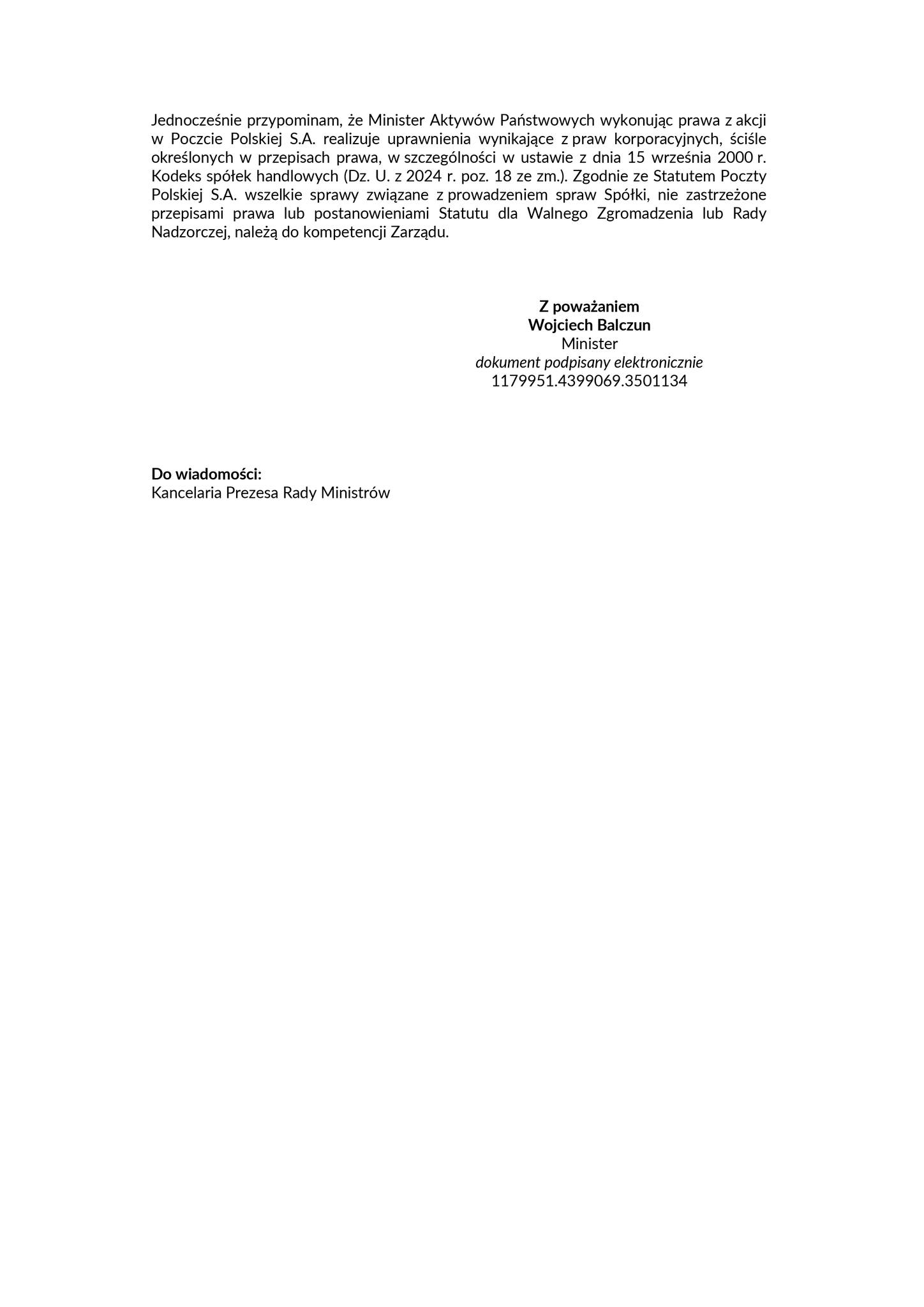 Poniżej dołączam pismo Ministra Aktywów Państwowych, aby każdy mógł się z nim zapoznać.