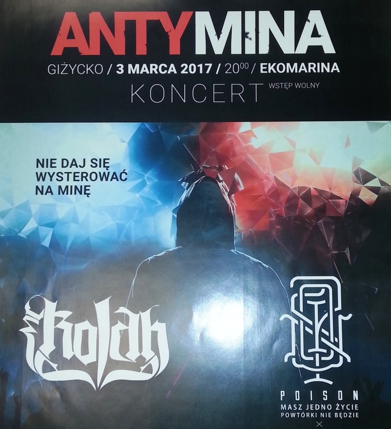 Policjanci z Komendy Powiatowej Policji w Giżycku już po raz czwarty przygotowują się do akcji skierowanej do młodzieży, by wspólnie z nią podjąć walkę przeciwko uzależnieniom od narkotyków i dopalaczy. Program profilaktyczny „Antymina”, skierowany jest do młodzieży szkół gimnazjalnych i ponadgimnazjalnych, oparty głównie na przekazie i opowieściach terapeutów, którzy niegdyś wplątani w świat przestępczy zmagali się z różnymi uzależnieniami. Teraz właśnie oni przestrzegają młodzież przed zagrożeniem, jakie niosą ze sobą różnego rodzaju środki odurzające. Terapeuci ci to profesjonalni muzycy hip-hopowi, mający na swoim koncie wiele nagranych płyt, którzy jak twierdzą – powrócili, by przestrzegać innych przed śmiercionośną miną.