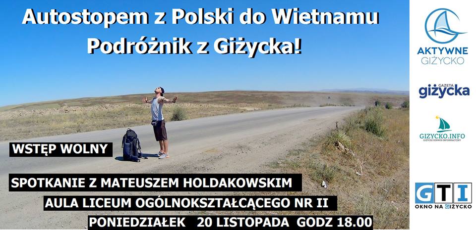 Zapraszamy na spotkanie z podróżnikiem – autostopowiczem, giżycczaninem Mateuszem Holdakowskim.