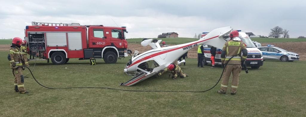 Awionetka z pilotem i pasażerem na pokładzie przewróciła się podczas lądowania. Pilotowi nic się nie stało, pasażerka została przewieziona do szpitala w Giżycku.