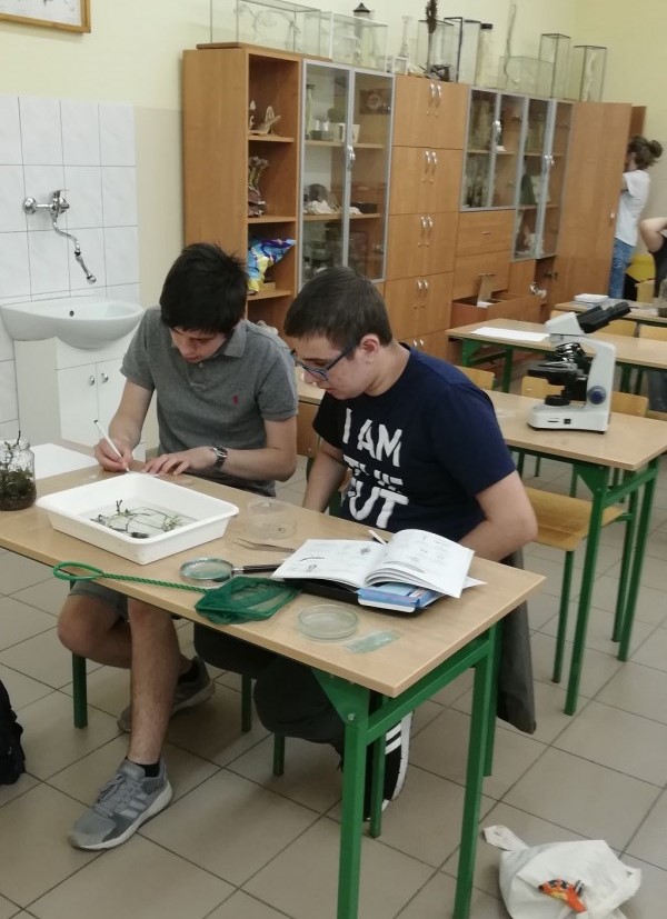 Uczniowie klasy I B oraz II EG z I Liceum Ogólnokształcącym w Giżycku określili wskaźnik jakości wód rzeki Sapiny metodą analizy makrofauny bezkręgowej.