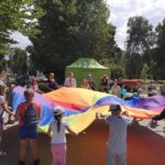 Były zabawy z chustą, konkursy i puszczanie baniek.