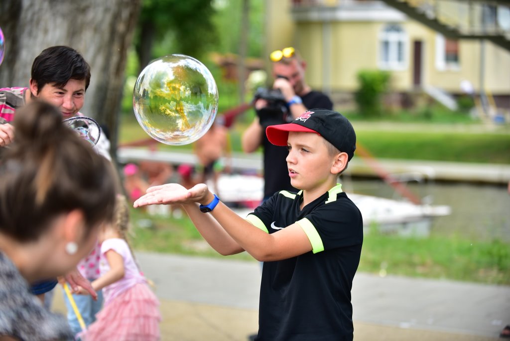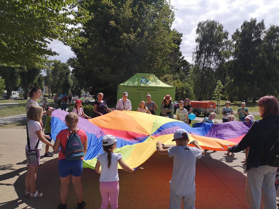 Były zabawy z chustą, konkursy i puszczanie baniek.