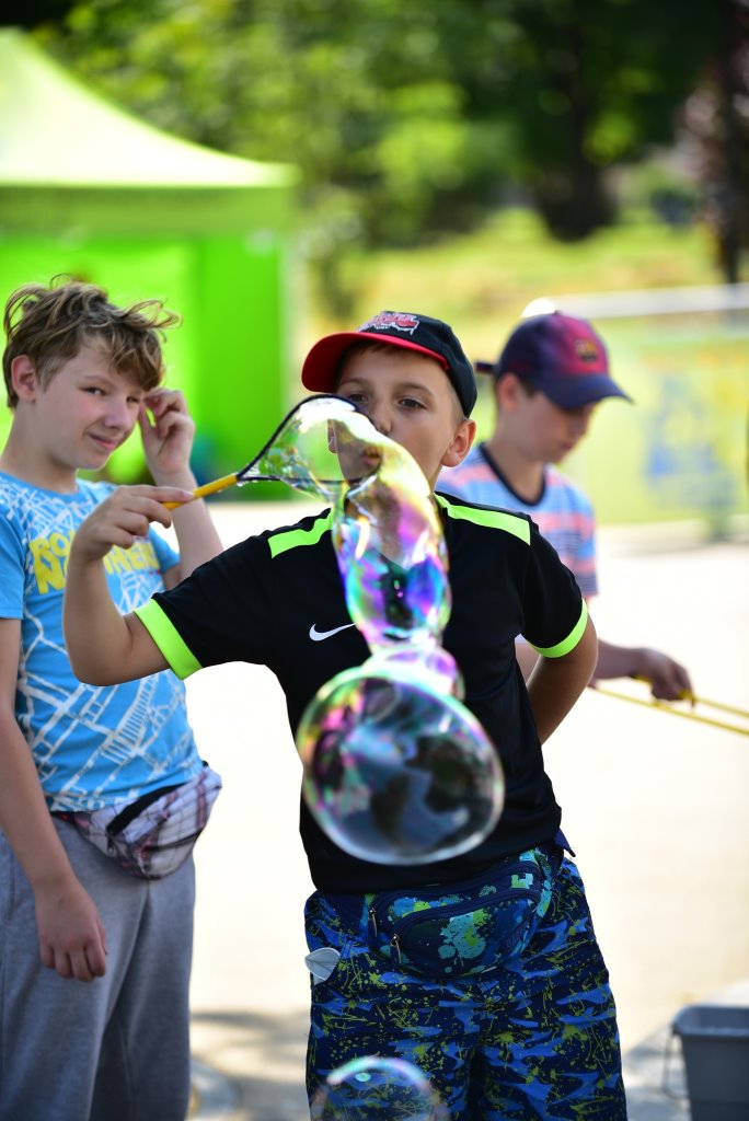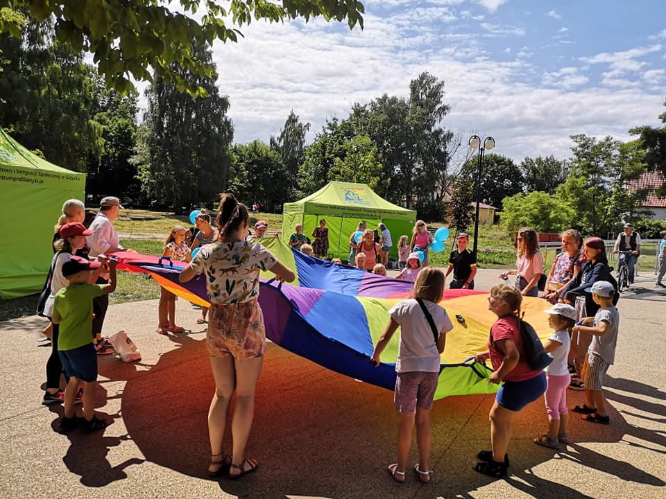 Centrum Profilaktyki Uzależnień i Integracji Społecznej zaprosiło na imprezę zespół KOSMOKWAKI, który rozbawili licznie zgromadzoną publiczność występem muzycznym. Następnie wychowawcy i opiekunowie ze Świetlicy Socjoterapeutycznej i Pełnej Chaty przeprowadzili animacje dla dzieci.