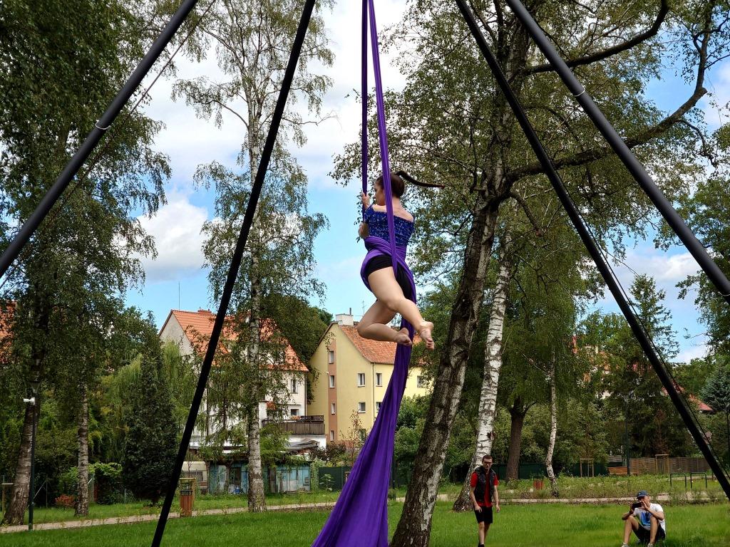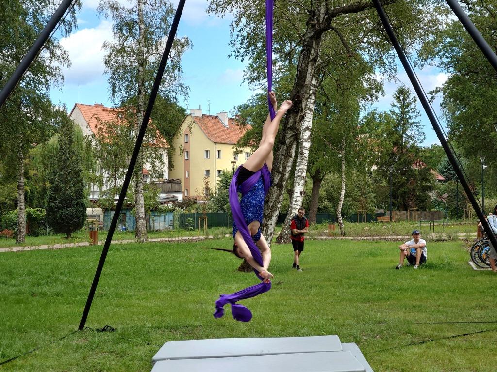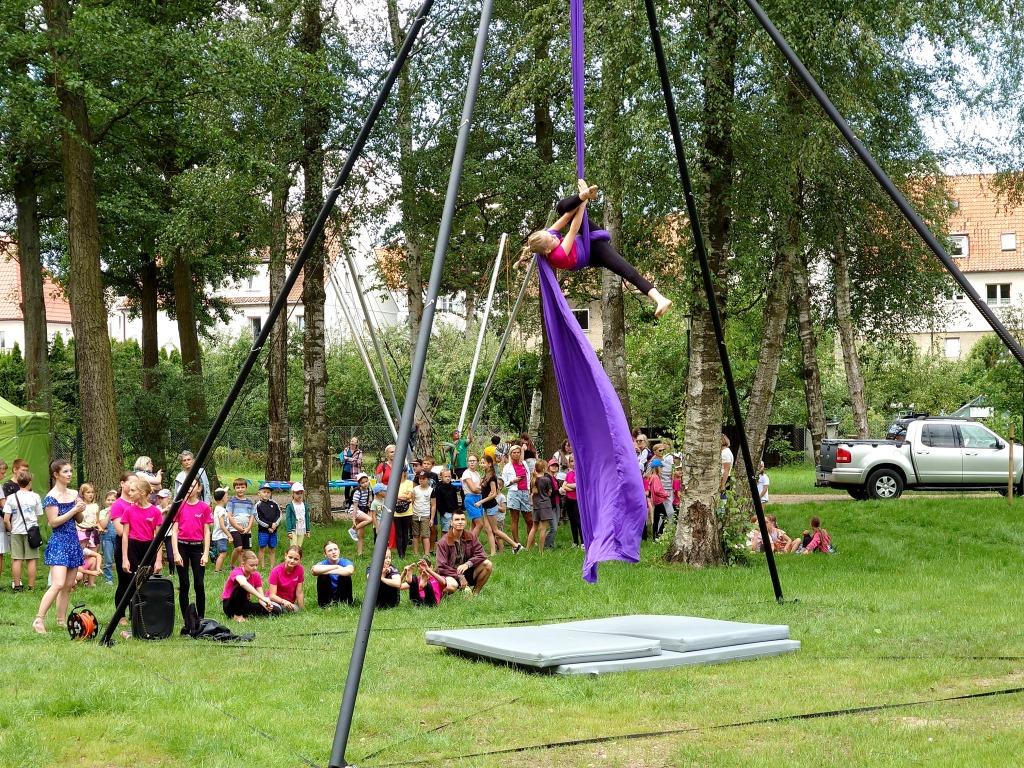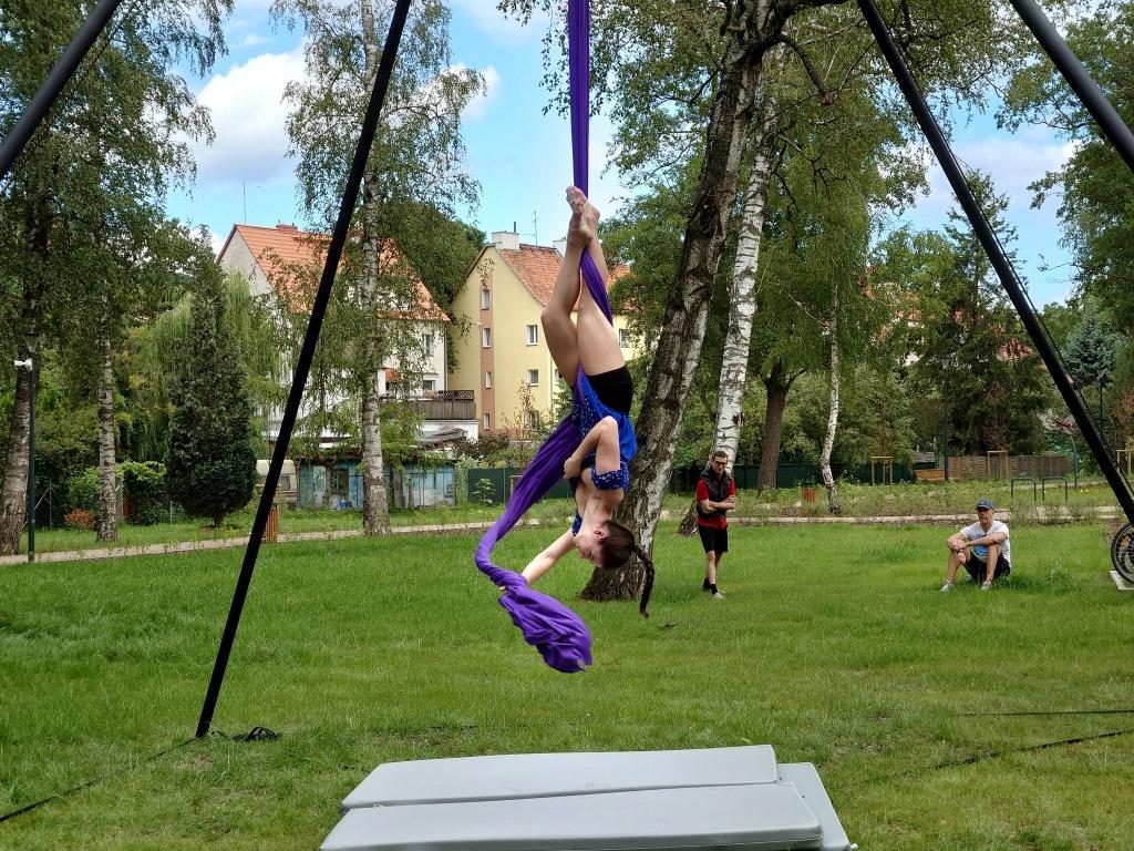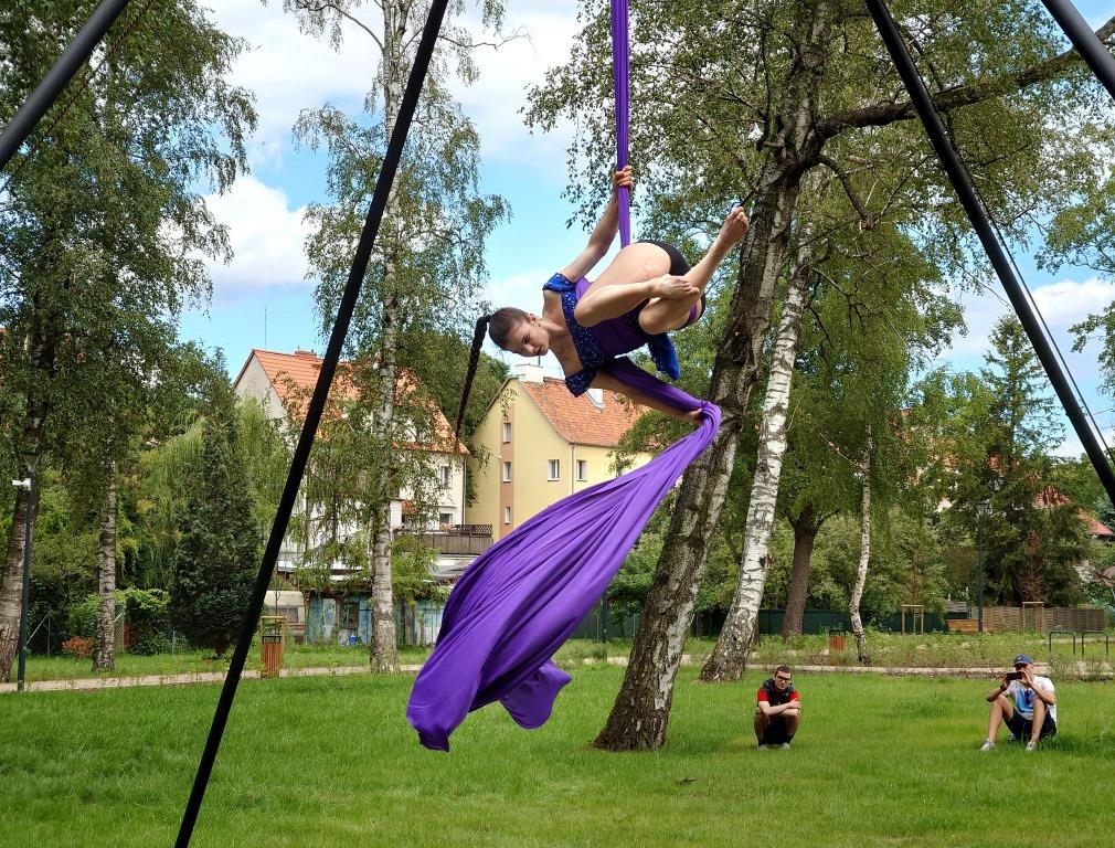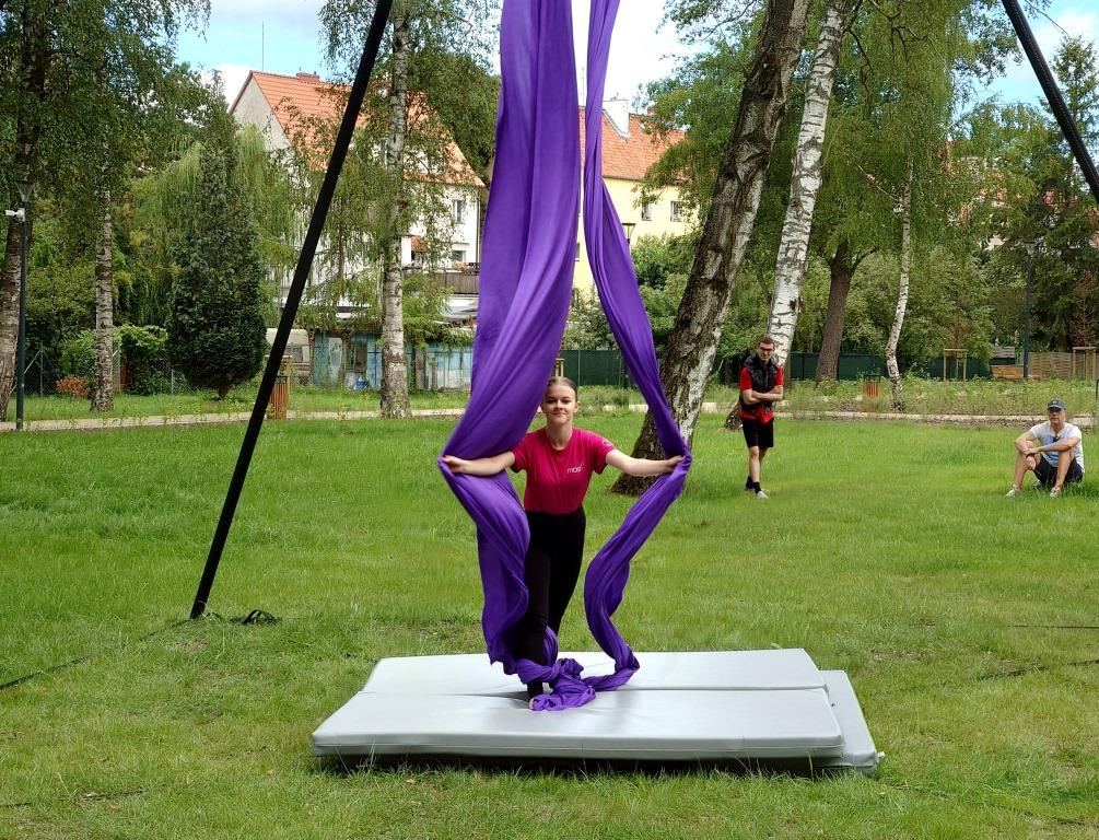 W dzisiejszym bajkowym lecie dzieci bawiły się z animatorem „Edyta Ale” pod hasłem „Kowbojskie lato”. Były dmuchawce, trampoliny, gry i zabawy z bańkami. Odbył się też wyjątkowy pokaz aerialowy na szarfach w wykonaniu Szkoły Tańca Mash Art. Młodzi artyści zaprezentowali swoje umiejętności akrobatyczne, wykonując zachwycające figury.