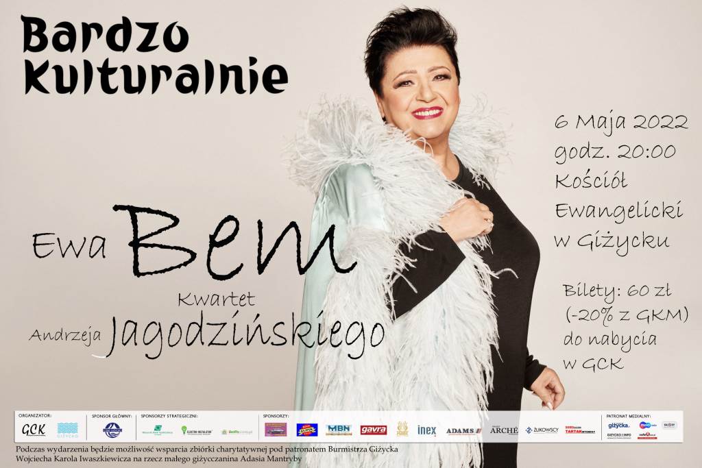 Koncertem inaugurującym cykl Bardzo Kulturalnie będzie występ Ewy Bem z kwartetem Andrzeja Jagodzińskiego! Uznawana za jedną z najpopularniejszych wokalistek jazzowych w Polsce, nazywana „pierwszą damą polskiego jazzu”. Do historii piosenki jazzowej i rozrywkowej weszły jej wykonania utworów: „Żyj kolorowo”, „Moje serce to jest muzyk”, „Gram o wszystko” czy „Wyszłam za mąż, zaraz wracam”.