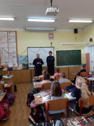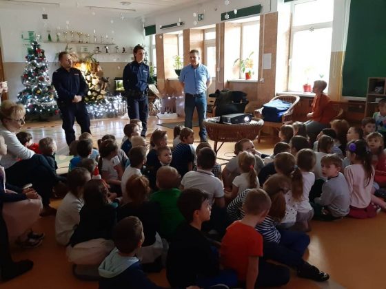 Policjanci również odwiedzili uczniów Szkoły Podstawowej nr 4 w Giżycku. Pogadanka oczywiście dotyczyła szeroko rozumianego bezpieczeństwa. Funkcjonariusze życzyli udanych ferii.