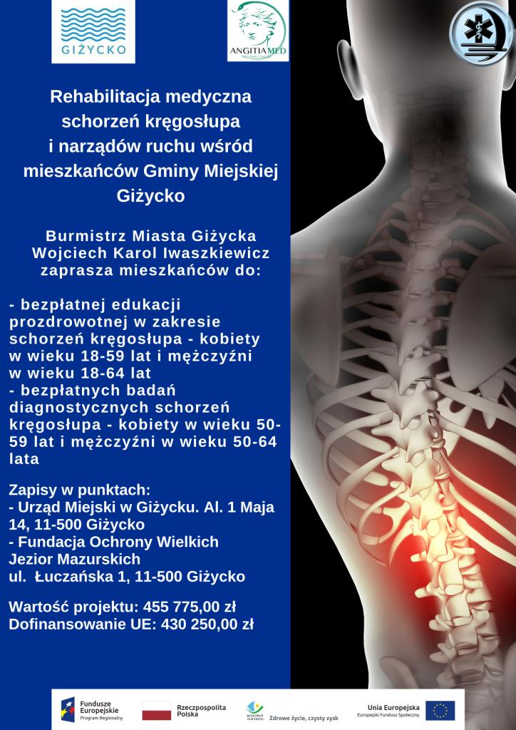 Trwa rekrutacja do projektu „Rehabilitacja medyczna schorzeń kręgosłupa i narządów ruchu wśród mieszkańców Gminy Miejskiej Giżycko”.