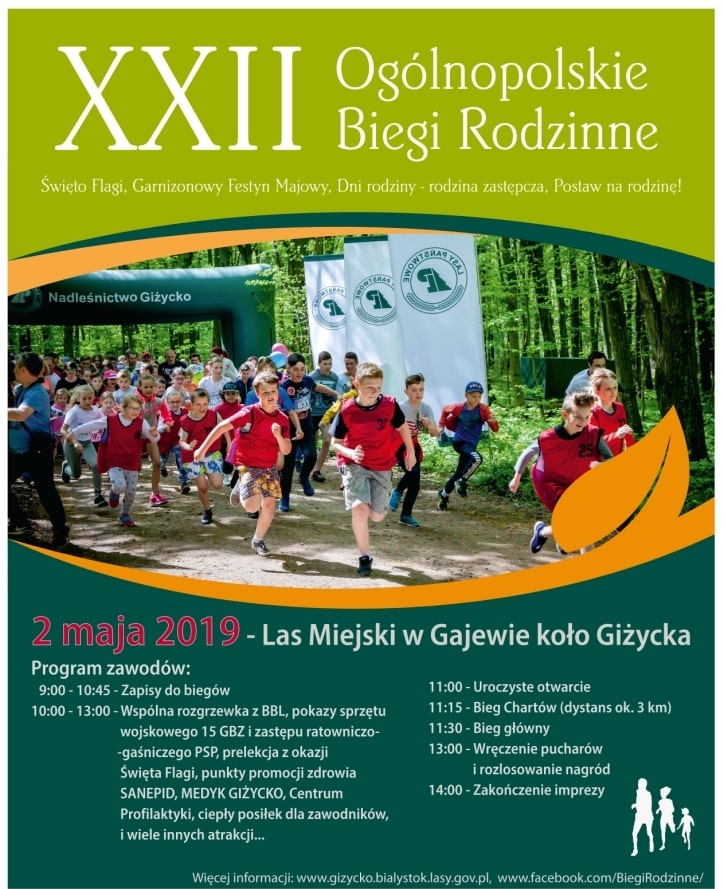2 maja to data, która na trwałe wpisała się w kalendarz giżyckich imprez rekreacyjno-biegowych. Tego dnia już po raz XXII odbędą się Ogólnopolskie Biegi Rodzinne, które są elementem ogólnopolskiej i giżyckiej kampanii Postaw na Rodzinę.