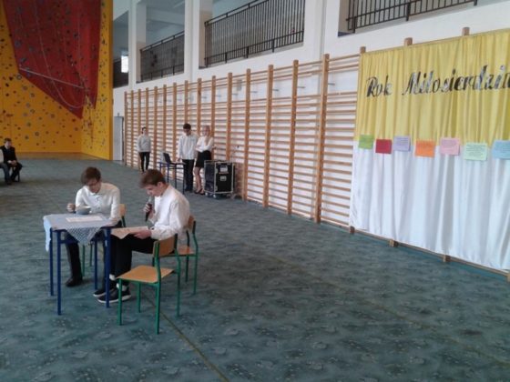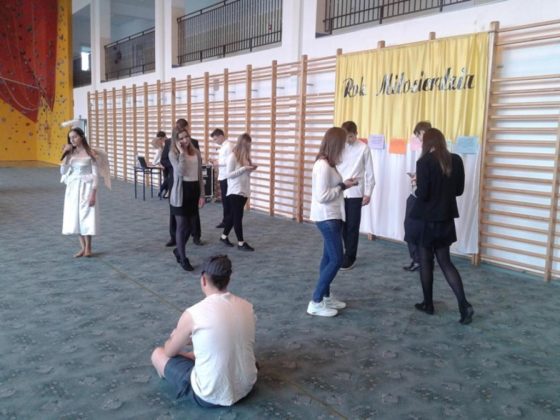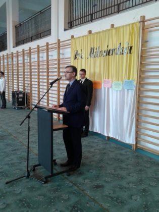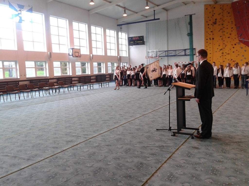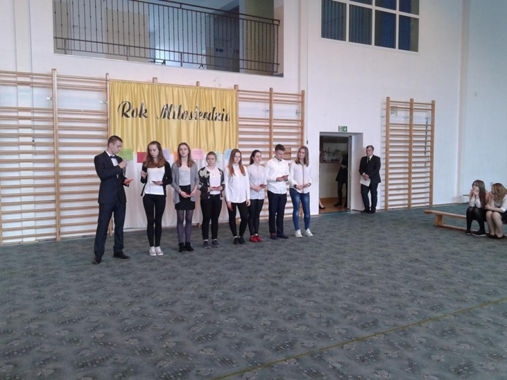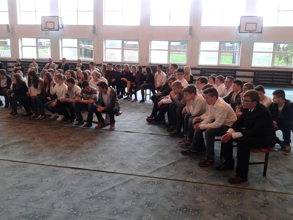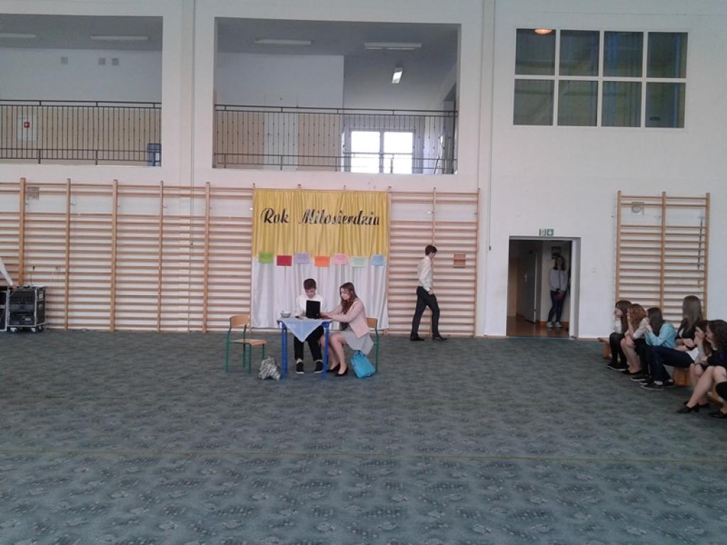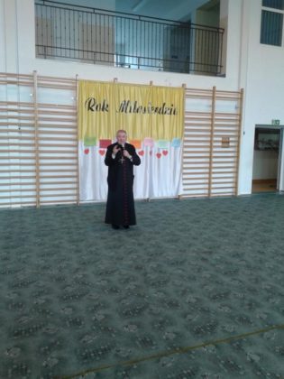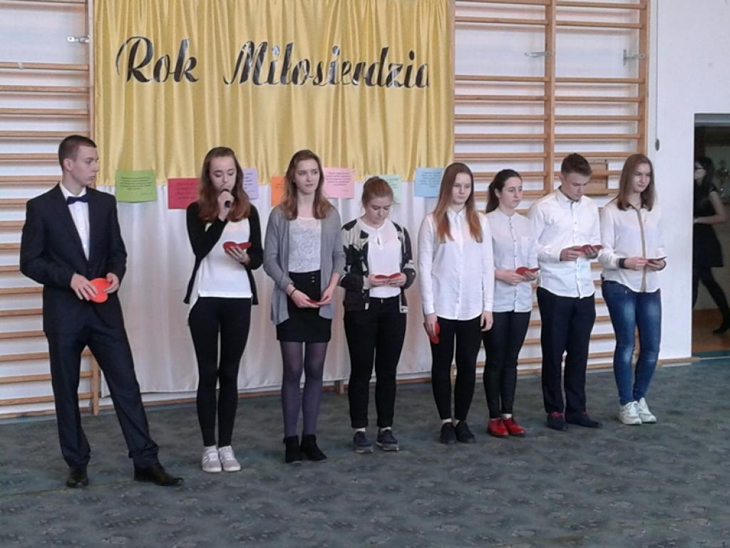 Dnia 26 kwietnia 2016r. naszą szkołę odwiedził Ksiądz Biskup Romuald Kamiński. Z tej okazji odbył się uroczysty apel, na który grupa uczniów z klasy III B z pomocą Ali Wołoszyn z III C i Ali Grodzickiej z IIA przygotowała montaż słowno-muzyczny. Poruszał on problemy współczesnego świata : pośpiech, zabieganie, brak czasu dla drugiego człowieka, obojętność na bezinteresowną pomoc, zbytnie zaabsorbowanie pracą i karierą. Na koniec Ksiądz Biskup podsumował nasze rozważania kierując do nas słowa pobudzające jeszcze głębiej do refleksji i udzielił błogosławieństwa całej społeczności szkolnej.