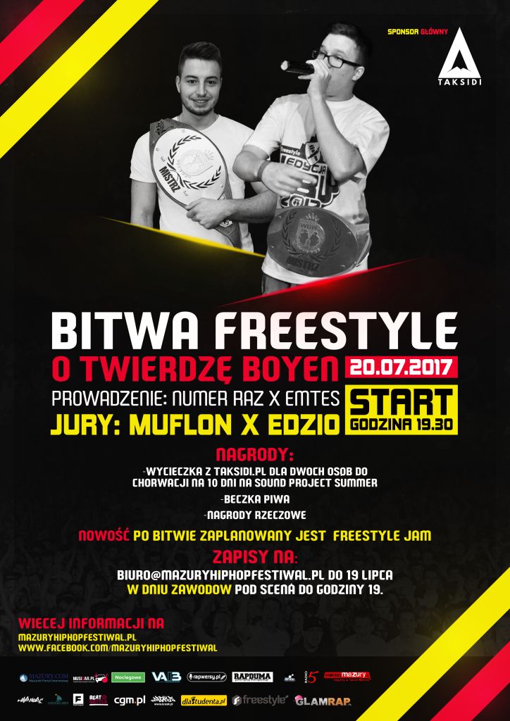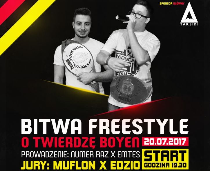 Bitwa Freestylowa w Mistrzowskiej Obsadzie Muflon X Edzio, połączona z Mistrzowskim prowadzeniem NumerRaz X Emtes. Nagrodą jest Wycieczka dla dwóch osób na 10 dni do Chorwacji z Taksidii na SOUND PROJECT SUMMER oraz klasyczna beczka piwa i nagrody rzeczowe. Podaj plakat dalej, a my odwdzięczymy się konkursem na karnety ! Nowością w tegorocznej edycji jest Freestyle Jam.