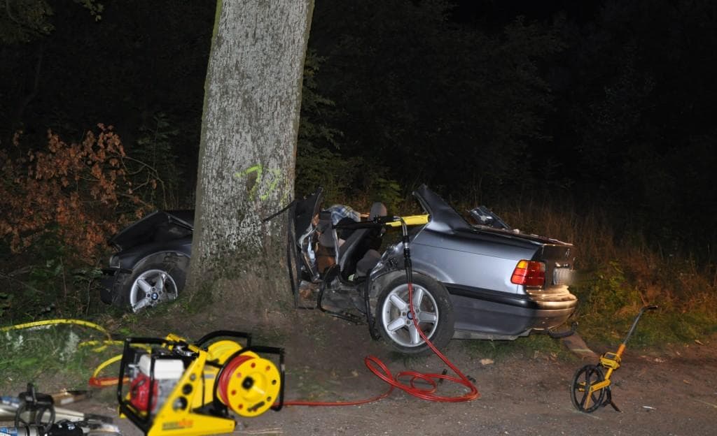 Szczytno.Dzisiejszej nocy szczycieńscy policjanci pod nadzorem prokuratora pracowali na miejscu śmiertelnego wypadku drogowego. Po północy na trasie Pasym-Dźwierzuty w okolicach miejscowości Grzegrzółki, osobowe bmw uderzyło w drzewo. Ze wstępnych ustaleń policjantów wynika, że 18-letni kierowca, mieszkaniec gminy Dźwierzuty, najprawdopodobniej po wyprzedzeniu innego pojazdu za łukiem drogi zjechał na lewe pobocze, odbił do prawej strony jezdni i uderzył lewą stroną pojazdu w przydrożne drzewo. 18-letni kierujący poniósł śmierć na miejscu. W aucie znajdowali się jeszcze czterej pasażerowie, trzej rówieśnicy kierowcy oraz jeden 15-latek. Osoby te z odniesionymi obrażeniami ciała zostały przetransportowane do szpitali w Olsztynie. 18-latek dzień wcześniej odebrał dokument uprawniający do kierowania pojazdami.