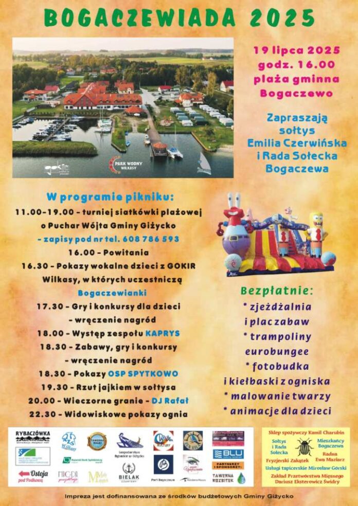 Organizatorami wydarzenia są sołtys Emilia Czerwińska oraz Rada Sołecka Bogaczewa. Piknik został dofinansowany ze środków budżetowych Gminy Giżycko.