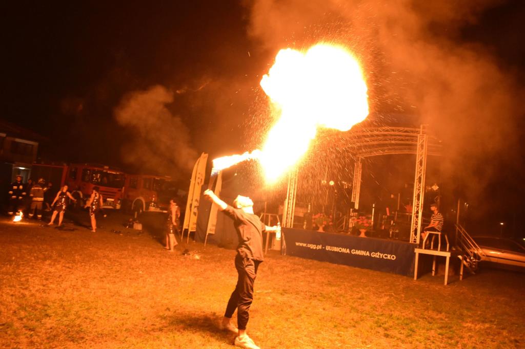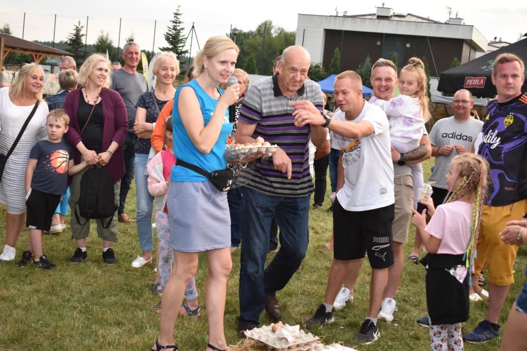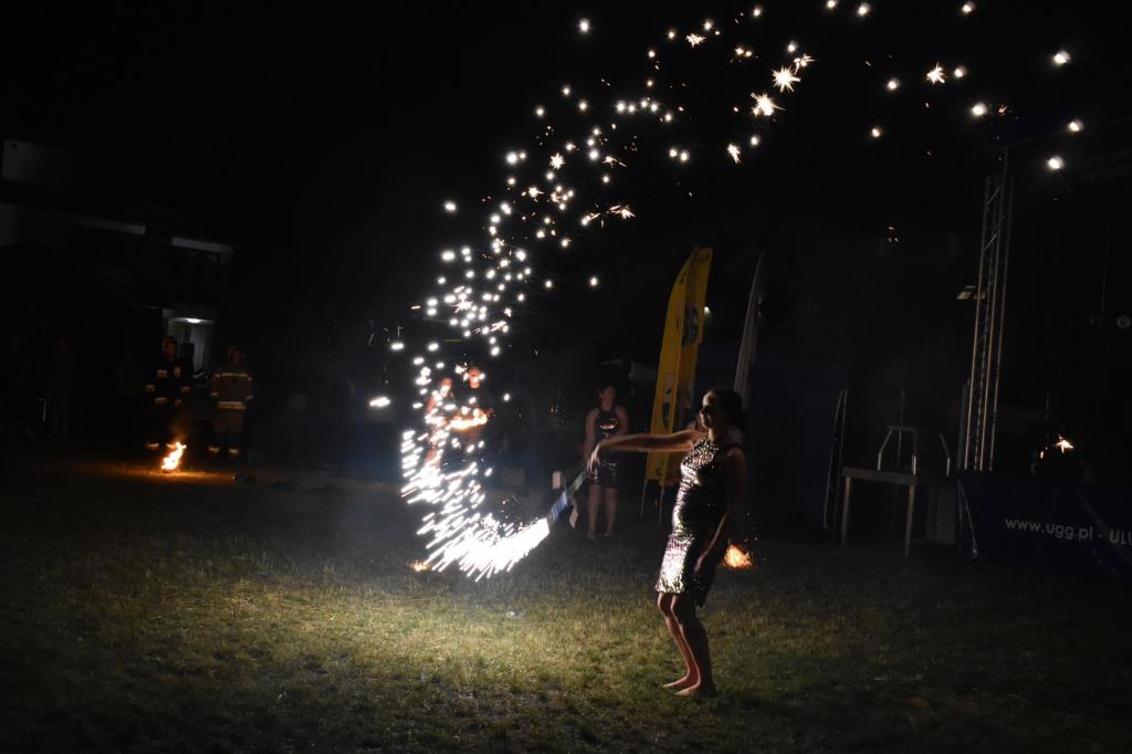 Nic nie przebiło jednak wesołego współzawodnictwa w rzutach świeżymi jajkami w sylwetkę sołtysa, która tak pięknie prezentowała się na początku zmagań, z biegiem czasu jednak pokrywała się spływającym żółtkiem z rozbitych jajek. Prawdziwą furorę zrobił pokaz ognia z elementami pirotechniki autorstwa Pracowni Tańca i Ognia „Transfuzja” z Biskupca.