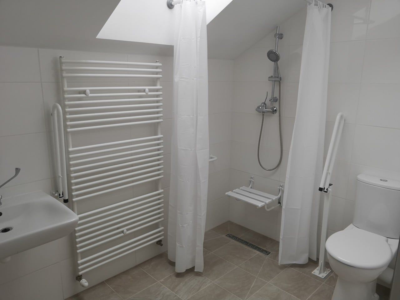 Cały budynek dostosowany jest do potrzeb osób niepełnosprawnych. Wygodny podjazd, winda, szersze ościeżnice w kilku mieszkaniach, to konieczne rozwiązania dostosowane do potrzeb osób mających trudności z samodzielnym poruszaniem się. Zadbano również o parking na samochody osobowe oraz całą infrastrukturę techniczną wokół budynku.