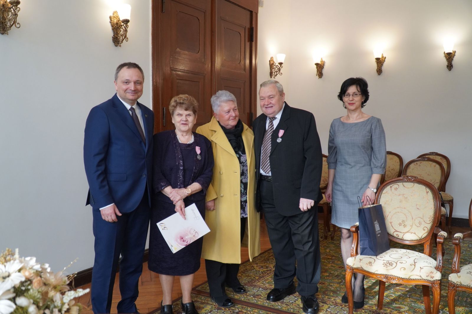 Burmistrz w towarzystwie Kierownika Urzędu Stanu Cywilnego Iwony Wojciulewicz wręczał odznaczenia indywidualnie dla każdej z par.