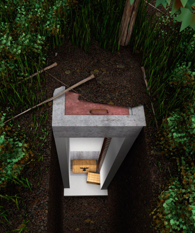 Skąd to wiadomo? Świadczy o tym drzewo, które częściowo wrosło w pokrywę o wymiarach 1,5 m x 1,5 m. Drzewo ma kilkadziesiąt lat i przez ten czas doskonale maskowało wejście do tunelu.