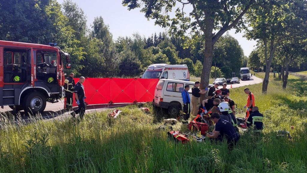 Mimo długiej reanimacji 19-letni kierowca dostawczego busa w wyniku poniesionych obrażeń zmarł na miejscu.