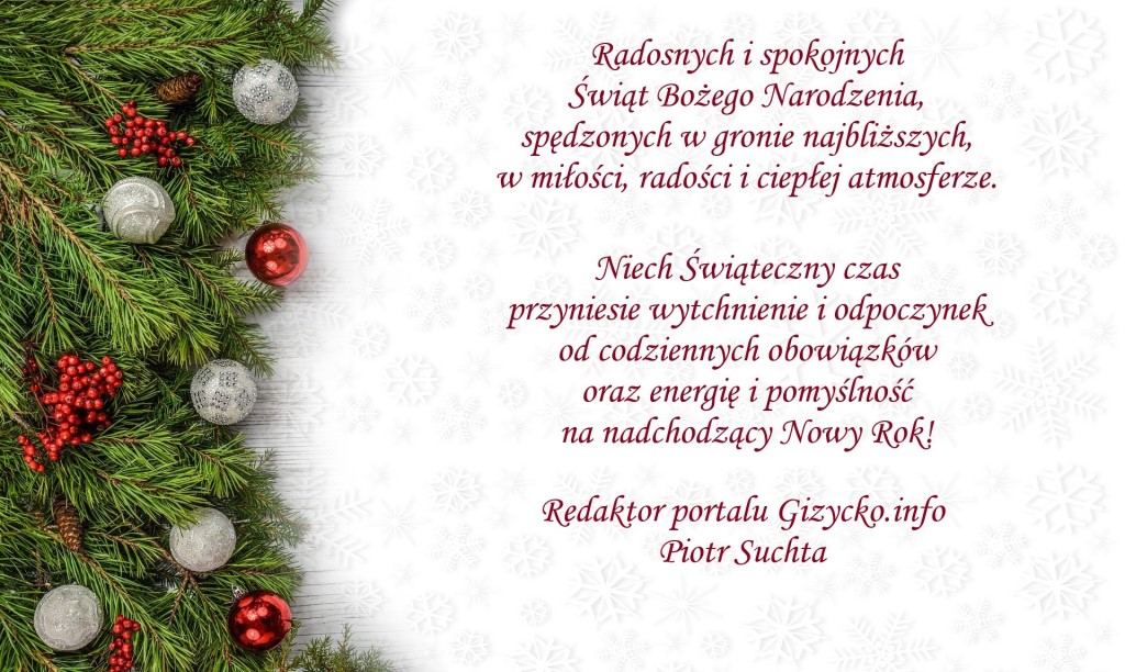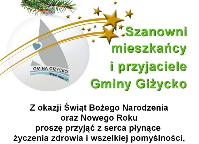 Życzenia Bożonarodzeniowe od Wójta Gminy i Przewodniczącej Rady Gminy Giżycko