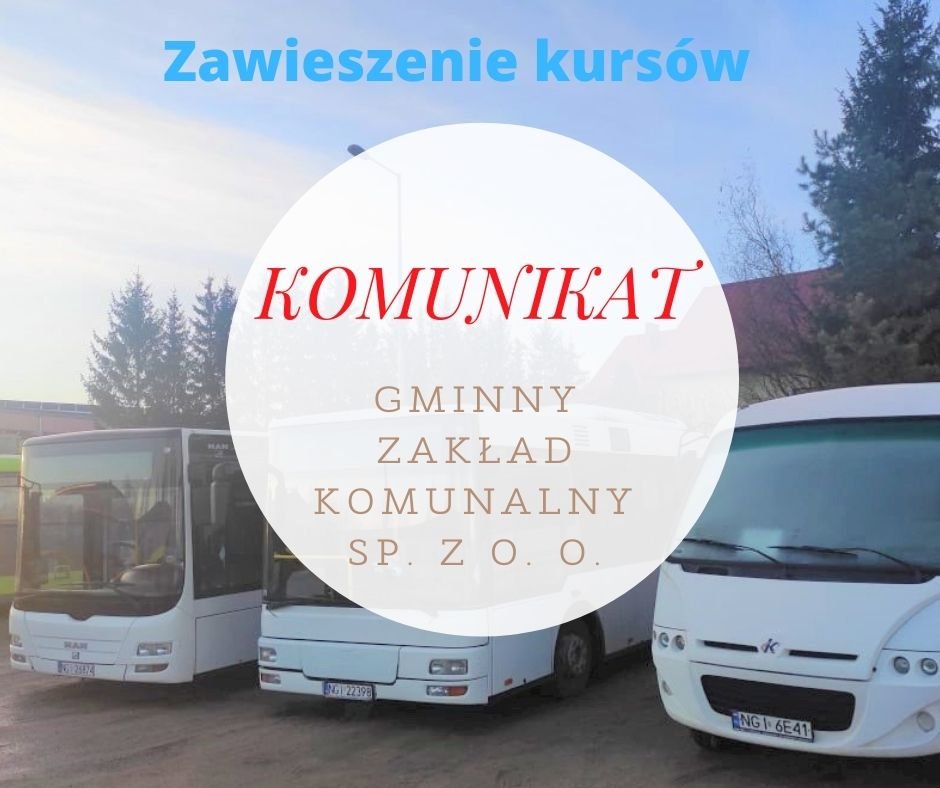 Gminny Zakład Komunalny w Bystrym informuje o zawieszeniu części kursów komunikacji regularnej.