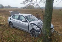 Wyprzedzał ciężarówkę. Stracił panowanie nad autem i uderzył w drzewo