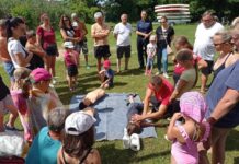 Policjantki i strażacy o bezpieczeństwie nad wodą. Piknik profilaktyczny w Wydminach