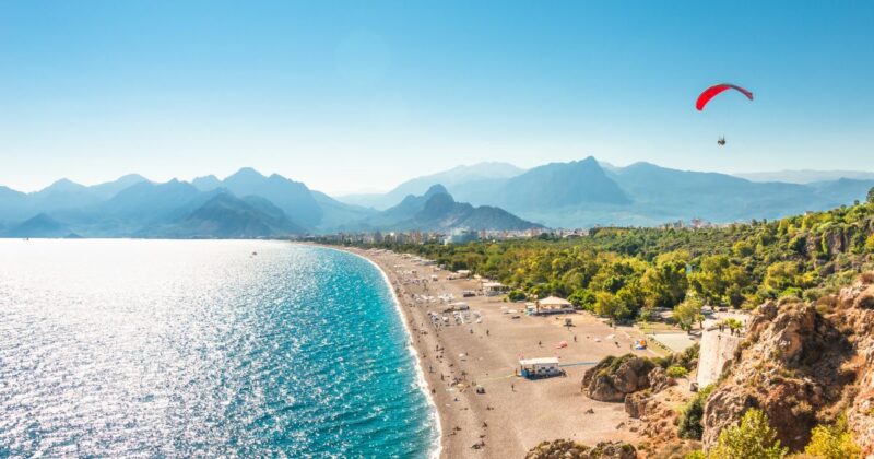 Antalya i jej okolice słyną z wielu malowniczych plaż, a w krystalicznie czystych wodach tutejszego morza zakochała się ponoć nawet egipska królowa Kleopatra. Złociste, szerokie wybrzeże rozgrzane promieniami tureckiego słońca zaprasza do ucieczki od codzienności, a ciepły piasek i szum morza kuszą wizją relaksu. Nic więc dziwnego, że od czerwca do września, turyści z całej Europy przyjeżdżają tu na wakacje, żeby spędzić je pod błękitnym niebem na jednej z licznych plaż. W szczycie sezonu wakacyjnego są zatłoczone, dlatego warto pomyśleć o zaplanowaniu wakacji w czerwcu lub we wrześniu. Można wówczas spodziewać się pięknej słonecznej pogody, ciepłego morza, ale bez tłumów turystów.