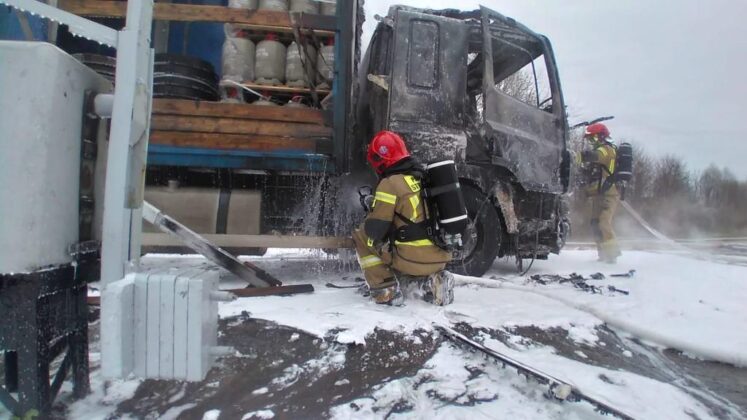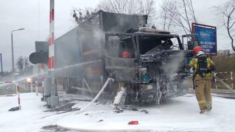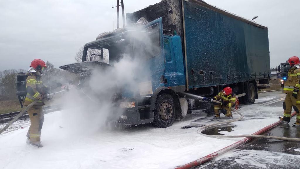 W środę (20.04), tuż przed przejazdem kolejowym na wyjeździe z Giżycka w stronę Orzysza, doszło do pożaru samochodu ciężarowego.