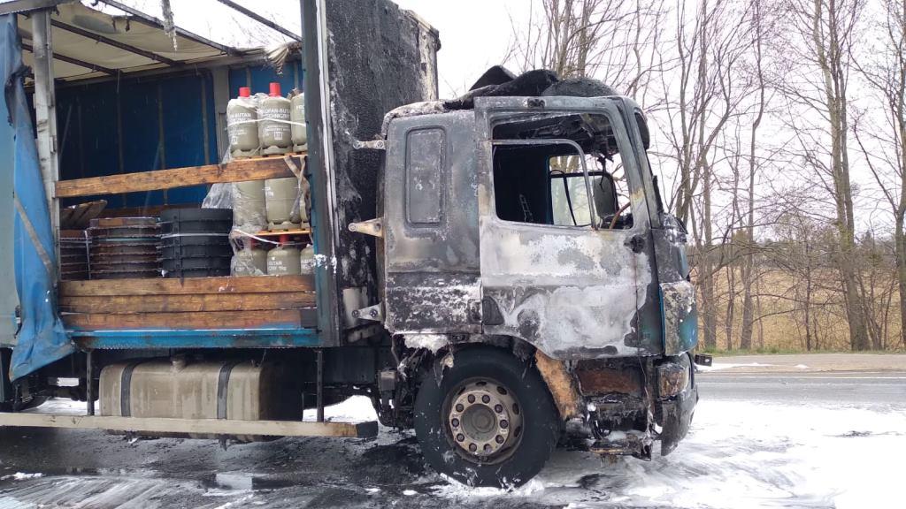 Spaleniu uległa naczepa oraz część kabiny. Kierowca przewoził butle gazowe, które były puste oraz płyty betonowe.