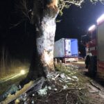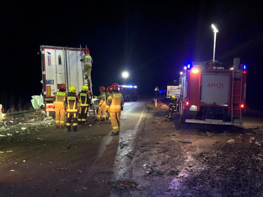 Ciężarówka uderzyła w drzewo i bariery. Kierowca trafił do szpitala w Giżycku (3)