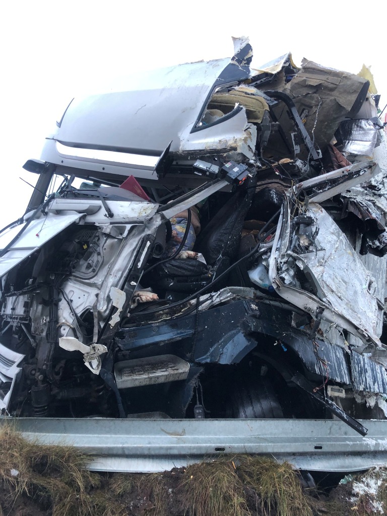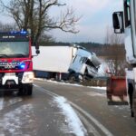 Ciężarówka uderzyła w drzewo i bariery. Kierowca trafił do szpitala w Giżycku (5)