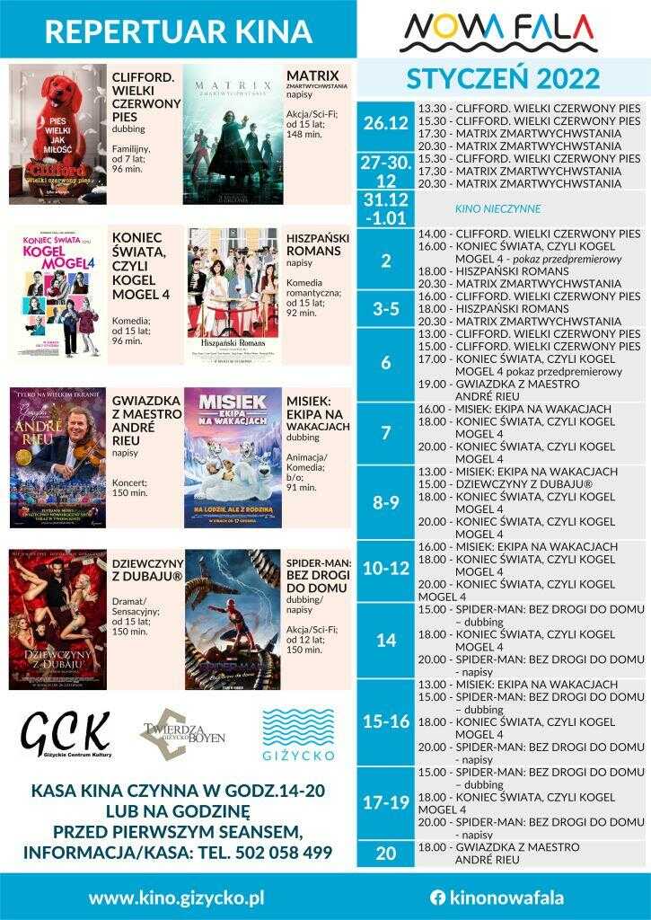 Sprawdź, jakie filmy będzie można obejrzeć w kinie Nowa Fala w Giżycku od 26 grudnia 2021 r. do 20 stycznia 2022 r. Kino Giżycko.