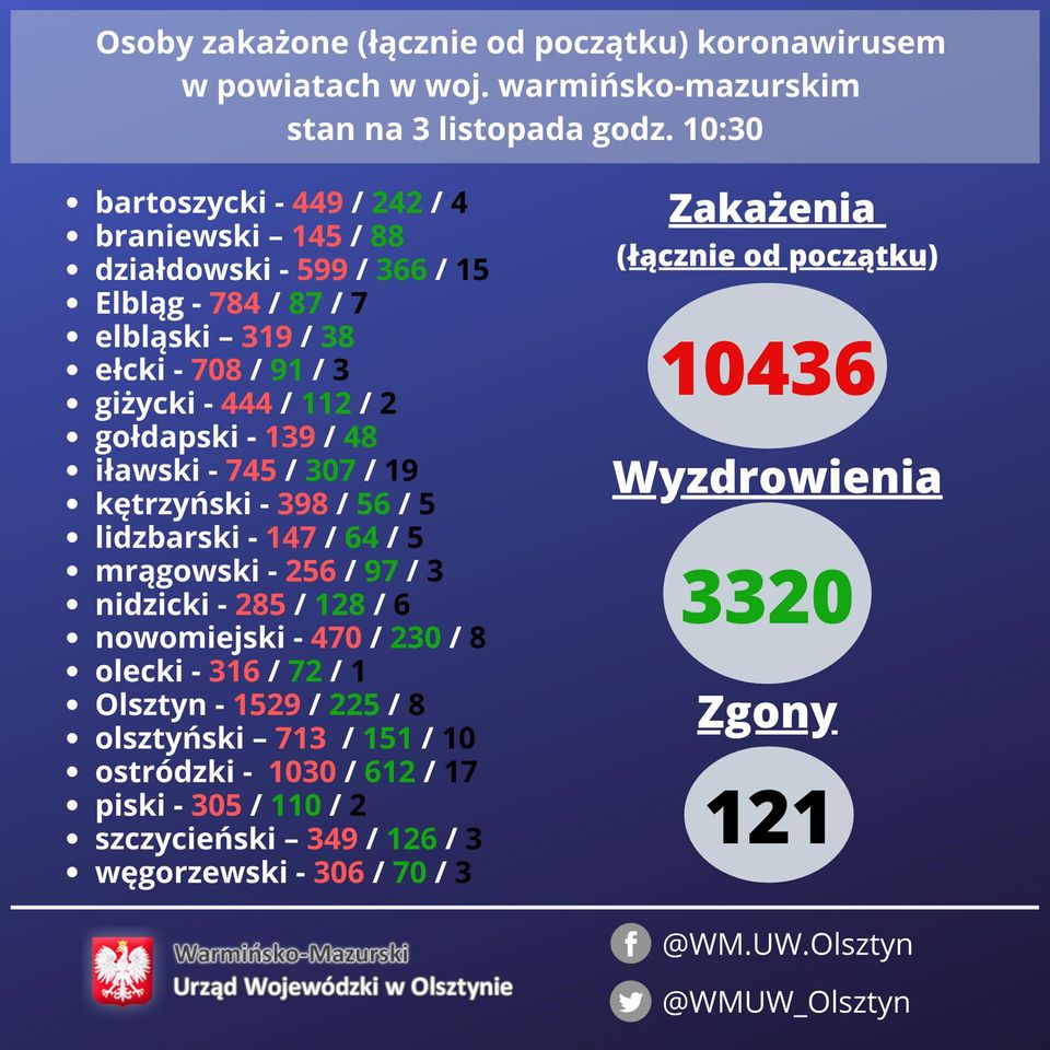 Na Warmii i Mazurach przybyło dziś 565 zakażonych koronawirusem. W powiecie giżyckim odnotowano kolejne 34 zachorowania.