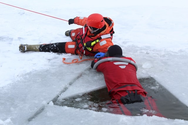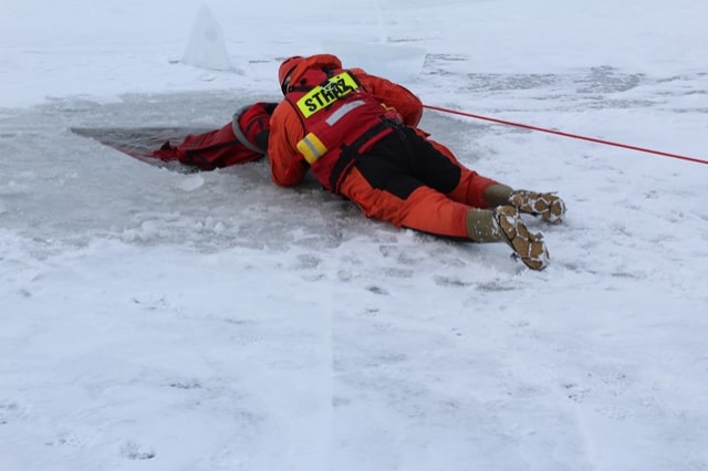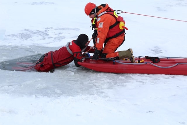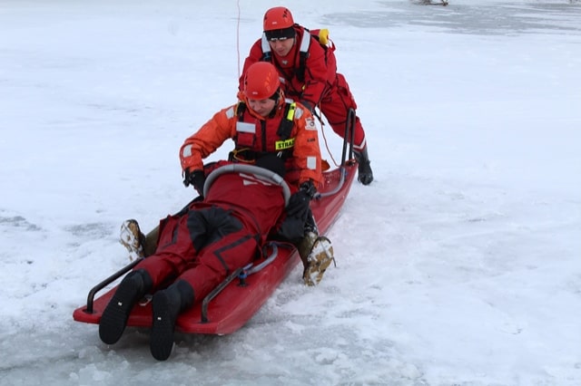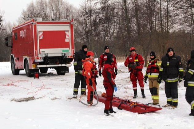 Giżyccy strażacy w ramach utrwalenia technik ratowniczych przeprowadzili cykl ćwiczeń dla każdej zmiany służbowej, których celem było prowadzenie działań ratowniczych w związku z załamaniem się lodu pod poszkodowanym. Podczas ćwiczeń przypomniano zasady BHP podczas pracy na zbiornikach wodnych, doskonalono umiejętności zabezpieczenia miejsca zdarzenia, dotarcia do poszkodowanego, jego podjęcia i ewakuacji z wykorzystaniem sprzętu znajdującego się na wyposażeniu Jednostki Ratowniczo-Gaśniczej. Kolejnym etapem szkolenia było utrwalenie zasad udzielania Kwalifikowanej Pierwszej Pomocy osobom podtopionym oraz znajdującym się w stanie hipotermii.