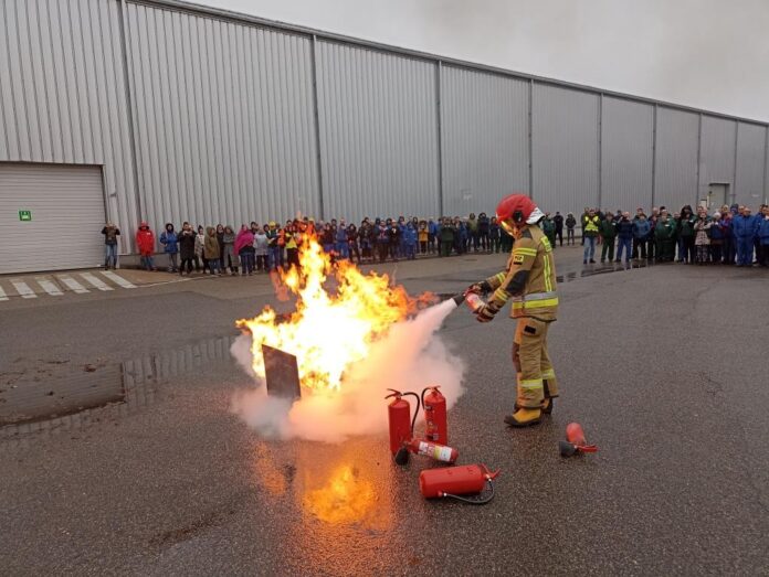 Po zakończeniu ćwiczeń dla pracowników zakładu przygotowana została prelekcja dotycząca podstawowych zasad zachowania się pracowników podczas wystąpienia zagrożenia oraz instruktaż użycia podręcznego sprzętu gaśniczego.