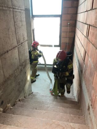 Tematem ćwiczeń były rozwinięcia bojowe w budynkach wielorodzinnych. Strażacy doskonalili umiejętności prowadzenia linii gaśniczych po klatkach schodowych na wyższe kondygnacje.