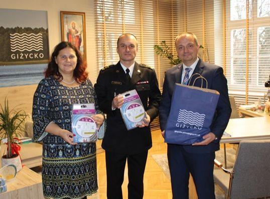 W trosce o bezpieczeństwo mieszkańców miasta kolejny raz do akcji przyłączył się Pan Burmistrz Giżycka Karol Iwaszkiewicz oraz Dyrektor Centrum Profilaktyki Uzależnień i Integracji Społecznej Pani Ewa Ostrowska przekazując na ręce Komendanta Powiatowego PSP bryg. Jacka Baczewskiego 9 czujników dymu i tlenku węgla.